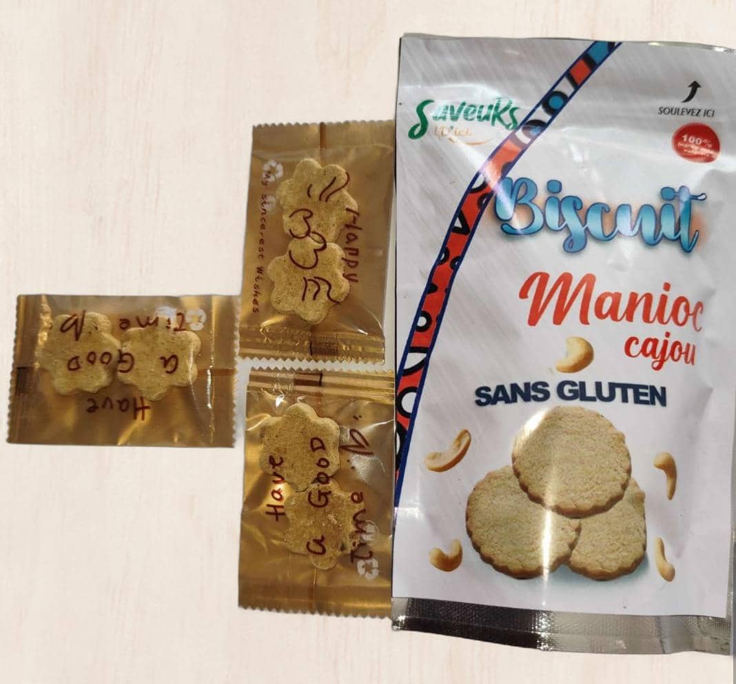 Le biscuit manioc et cajou est un délicieux mélange de manioc et de cajou et d’œufs auquel nous avons ajouté du sucre afin d’obtenir un goût idéal.
